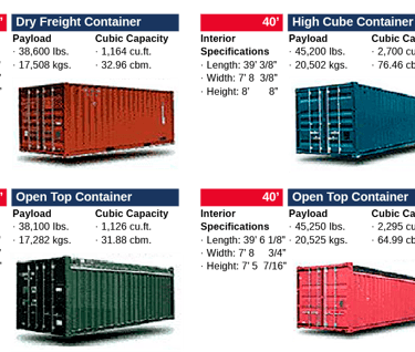 Contenedores disponibles y preparados para cualquier carga seca normal, como pallets, bolsas, cajas, etc.